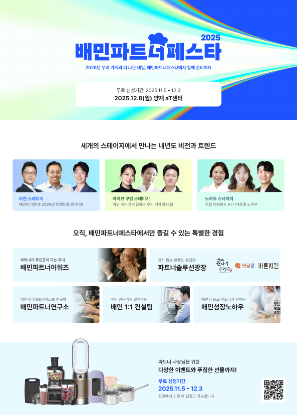 배달의민족 운영사 우아한형제들은 국내 외식업계 종사자를 위한 무료 오프라인 행사 '2025 배민파트너페스타'를 아래와 같이 개최합니다.