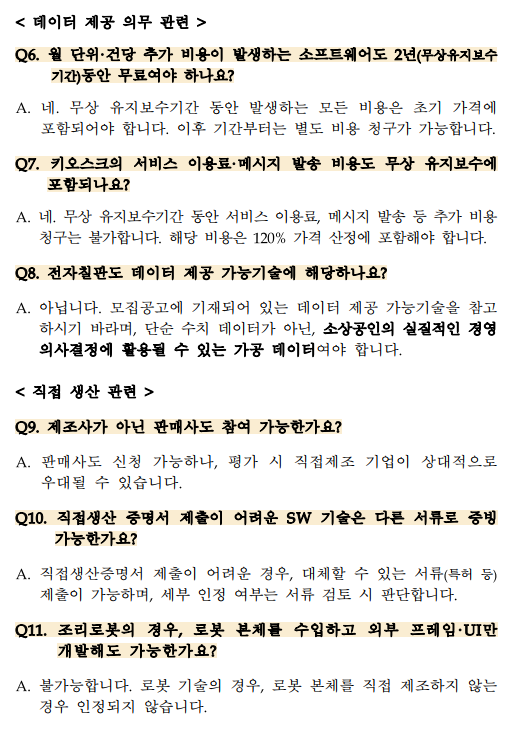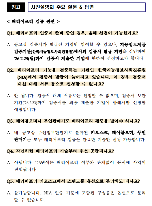 2026.1.8.(목) 진행된 2026년 스마트상점 기술공급기업 사전설명회 주요 질답 내용을 첨부하오니