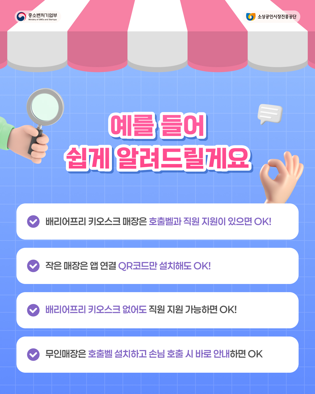 배리어프리 키오스크 가이드라인과 카드뉴스 통해 변경된 내용 확인하시기 바랍니다.
