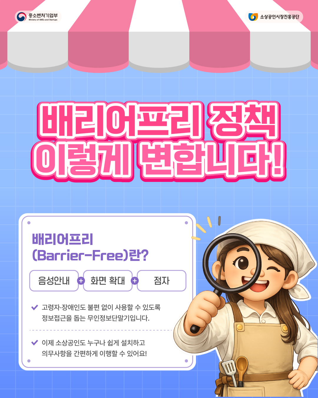 배리어프리 키오스크 가이드라인과 카드뉴스 통해 변경된 내용 확인하시기 바랍니다.