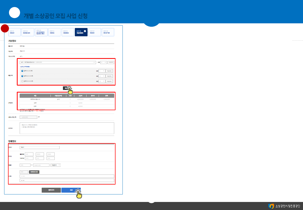 개별 소상공인 모집 사업 신청